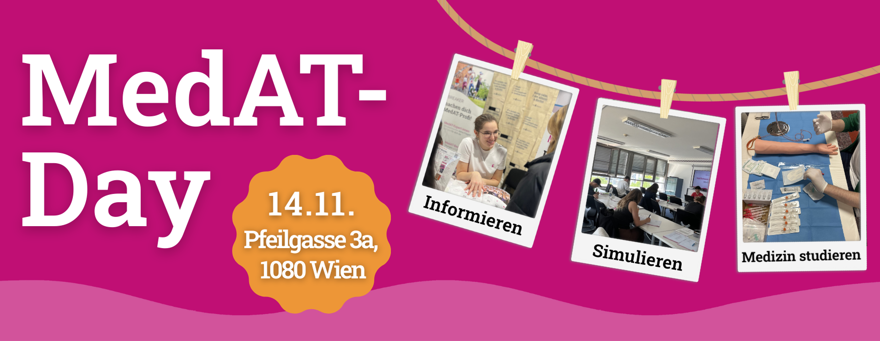 Du willst einen Tag voller MedAT- und Medizin-Insights verbringen, eine kostenlose KFF-Simulation schreiben, Medizinstudierenden all deine Fragen stellen und dich rund um gewidmete Studienplätze informieren? Das ist deine Chance!